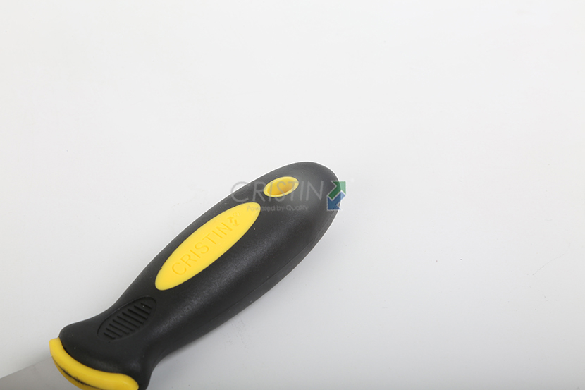 加厚型不銹鋼油灰刀,除具有普 通油灰刀的傳統(tǒng)特點(diǎn)外還具有開(kāi) 啟瓶蓋、 起釘功能;刀體圓弧可 以在清洗滾筒時(shí)擠出多余涂料; 鋒利刀尖可用于挖開(kāi)破損開(kāi)裂的 墻體;鋒利的刀刃用于刮鏟效率 極高。