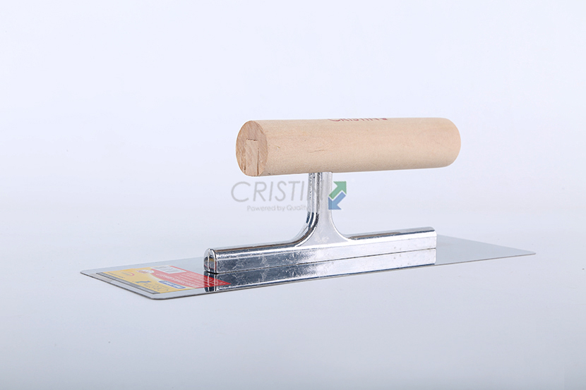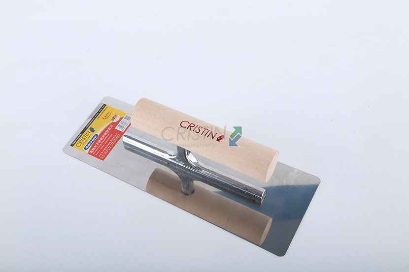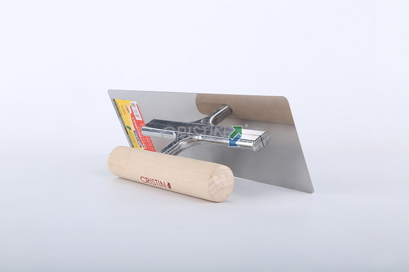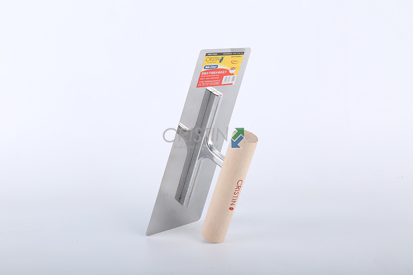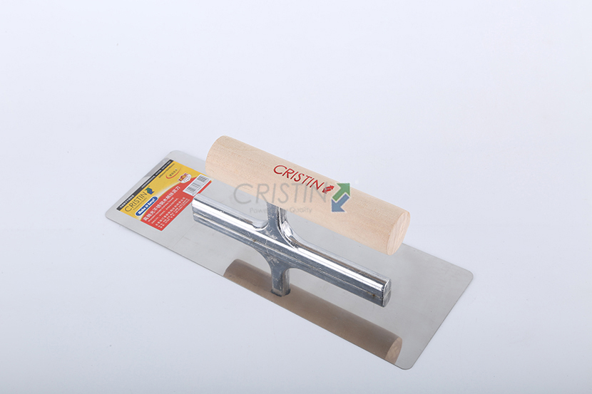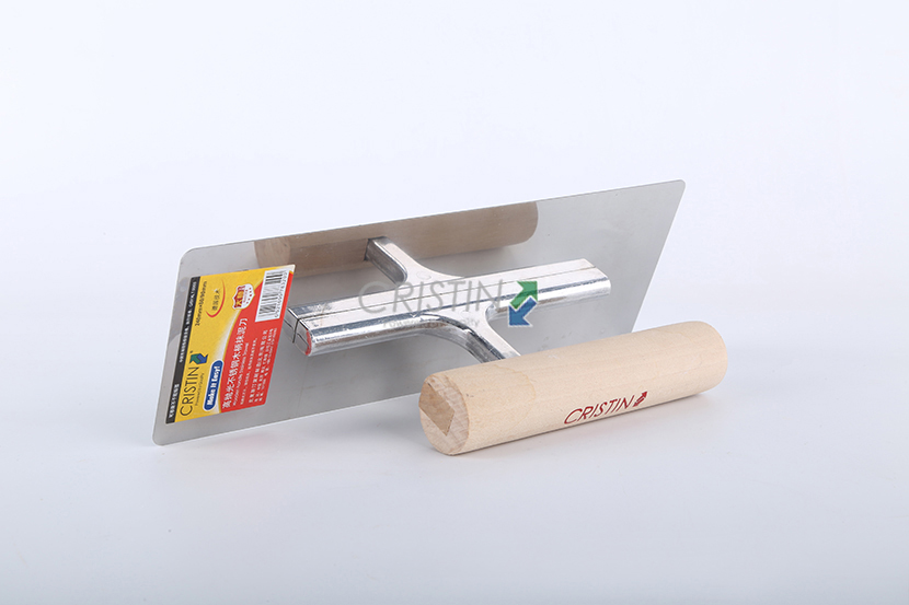 高拋光不銹鋼木柄抹泥刀,圓角